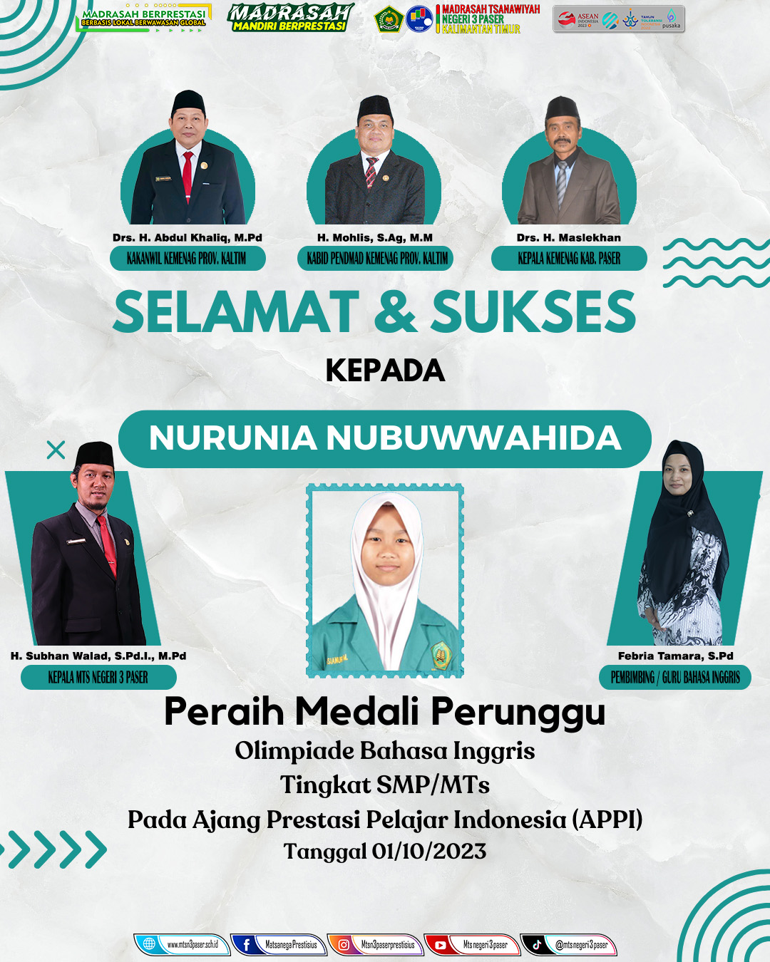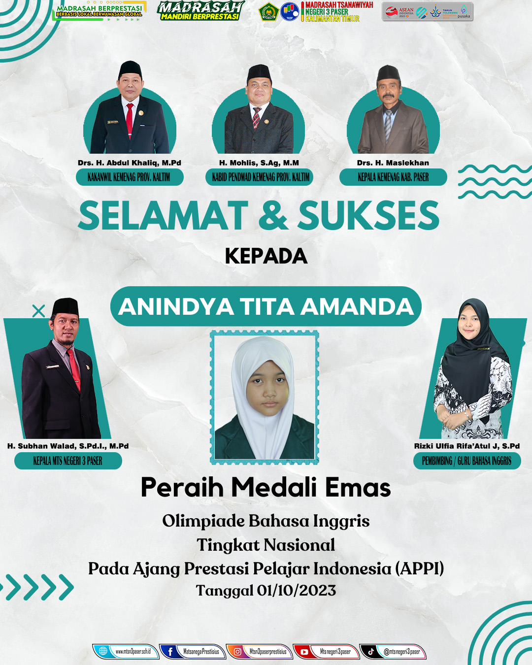 Lagi dan Lagi Siswi MTs N 3 Paser Raih Prestasi Tingkat Nasional OLIMPIADE. [...] 08 Oktober 2023 Oleh superadmin Prestasi 0 Komentar Read more...