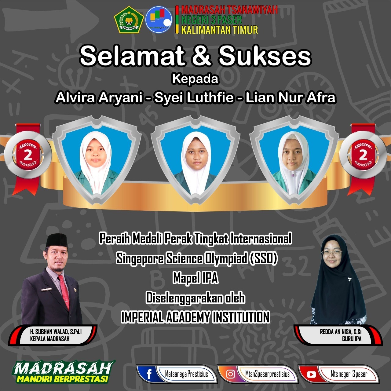 Keren, Siswi MTs Negeri 3 Paser Raup Medali di Ajang Singapore Science Olympiad . [...] 08 April 2022 Oleh humas Prestasi 0 Komentar Read more...
