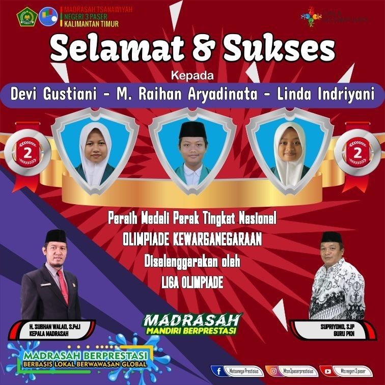 2 Pelajar MTs Neger 3 Paser, Sabet Medali Medali Perunggu . [...] 08 April 2022 Oleh humas Prestasi 0 Komentar Read more...