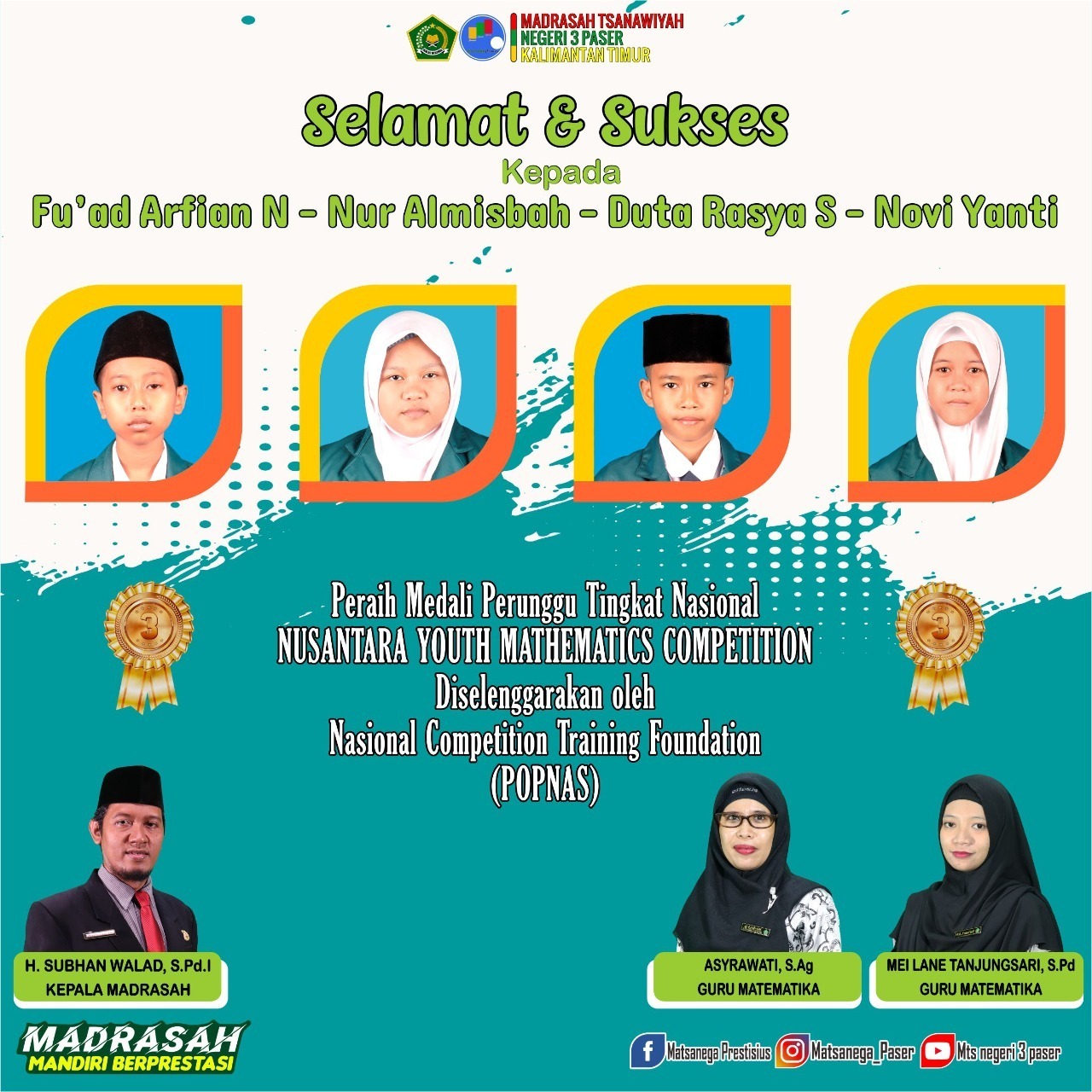 Alhamdulillah Siswi MTs N 3 Paser Raih Medali Perak . [...] 31 Maret 2022 Oleh humas Prestasi 0 Komentar Read more...