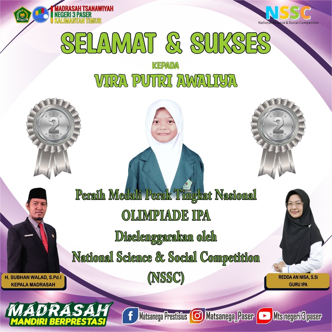 Irmayanti, Siswi MTs Negeri 3 Paser Raih Perak di Tingkat Nasional